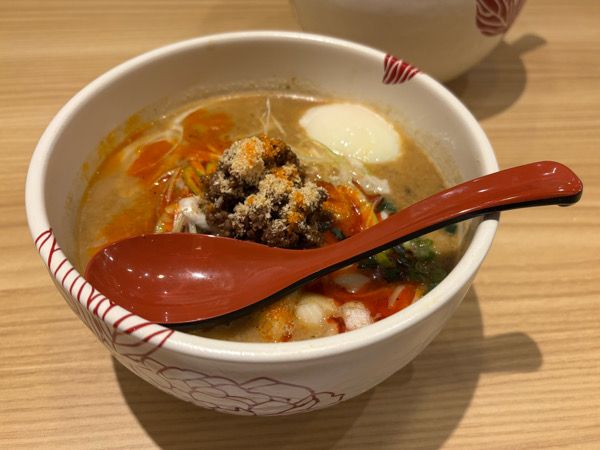 とても良い香りだったからです。 よせみての担々麺のベースは鶏ガラと豚骨を8時間以上煮込んだ濃厚なスープ。ここに12種類の唐辛子をブレンドしたラー油と、4種類の胡麻をブレンドしたペーストが加わります。この濃厚で香りの良いスープとモチモチの麺がしっかり絡んで美味しい!