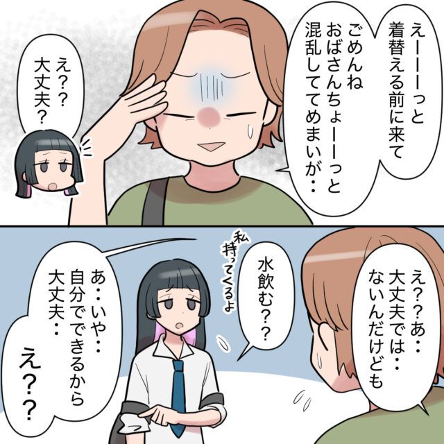 「えーーーっと、着替える前に来て。ごめんね・・おばさんちょーーーっと混乱しててめまいが・・」お母さんがそう言うと、「え??大丈夫?」と心配そうに言うエリカさん。「え??あ・・大丈夫では・・ないんだけども」しどろもどろで答えるお母さんに「水飲む?私持ってくるよ」とエリカさんは真剣に言い、それを見て「あ・・いや・・自分でできるから大丈夫・・え??」そう答えた後でエリカさんの言葉に驚きました。