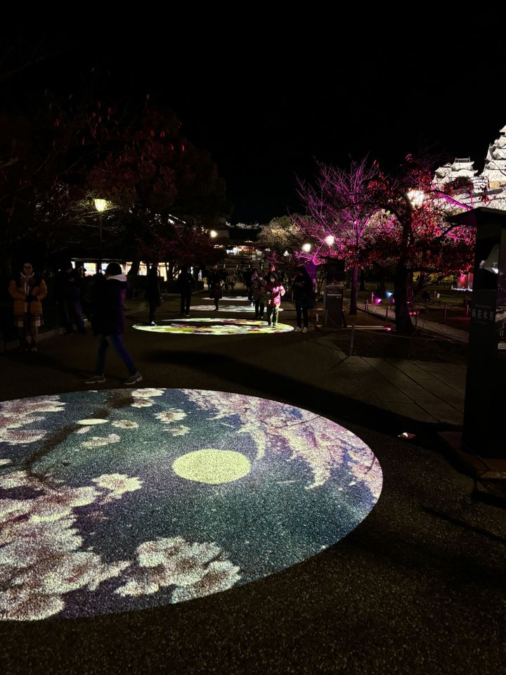 まず、目に飛び込んできたのは色とりどりに灯る光のアート。その色合いや形状が次々と変化し、まるで生き物のように呼吸をしているかのよう。光の変化に合わせて音楽もゆったりと変わり、五感が一体となって心地よい余韻を残します。寒かったけれど、素敵だったなぁ。