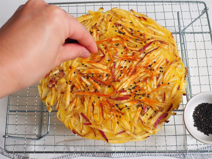 7. 網などに乗せ少し冷まし、お好みで黒ゴマをかけたら完成。