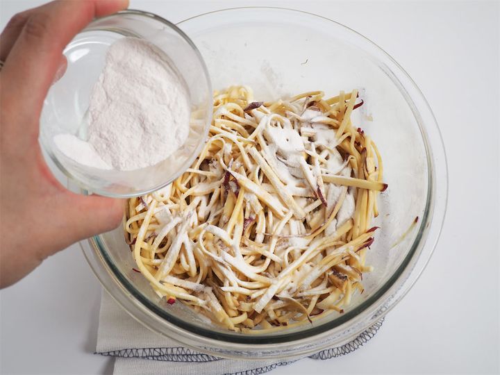 米粉や片栗粉…さつまいも100gに対して大さじ1ほど