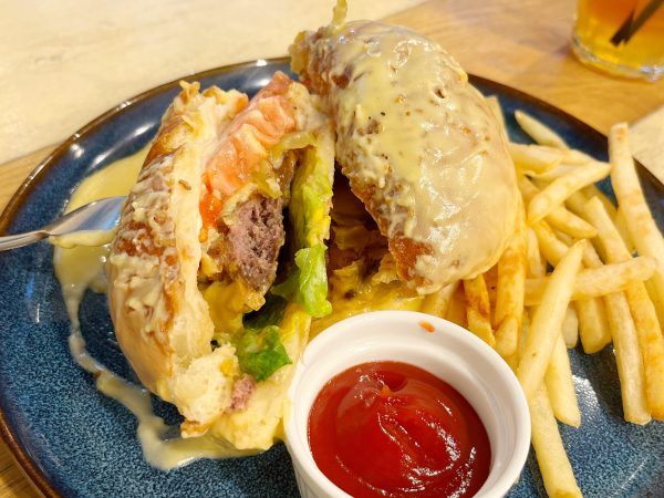 なんと、ハンバーガーの上からチーズやバター・生クリームで作った特製のバターチーズソースをたっぷりとかけたハンバーガーは、まさにギルティな一品。見た目のインパクトは大ですが、それだけでなく味も保証付きです!