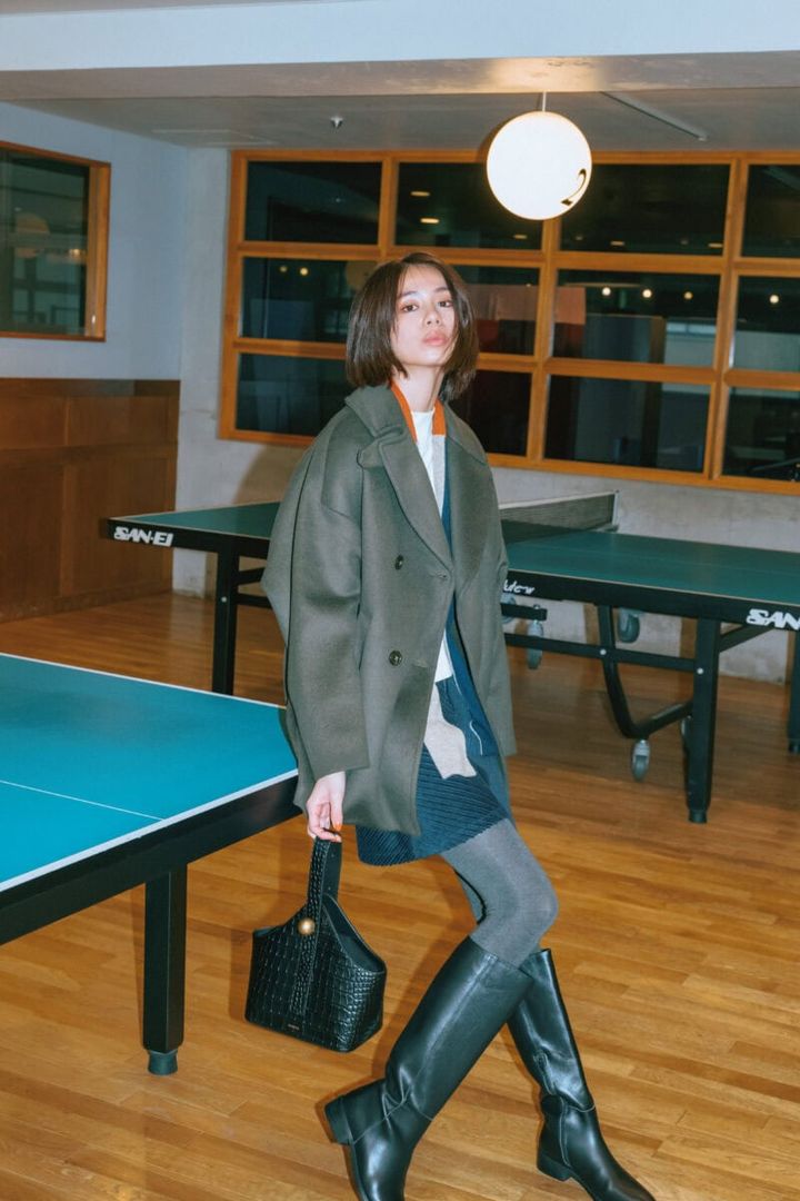 「ティッカのピーコートを愛用していますが、着心地が軽く肩肘張らずに着こなせるのがデイリー使いしやすい理由のひとつ。着たときに適度に曲線を描く女性らしい品のあるシルエットなので、大人にちょうどよく似合うんです。」