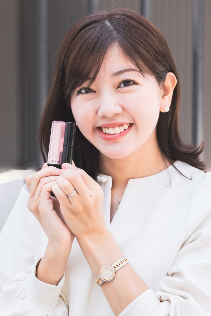「ヘラのリップは174番を使っています。保湿力がよく、ぷるんと仕上がって唇のしわがなくなるのが感動的。口紅よりも抜け感が出せる色付きリップクリームのほうが学校行事のきちんと服に合う気がします。ヘラを塗る前にシャネルのレ ベージュ ボーム ア レーヴル186875番を先に塗ると色持ちがいいので、2本使いをすることが多いです」坂倉安奈さん(35歳・158センチ)