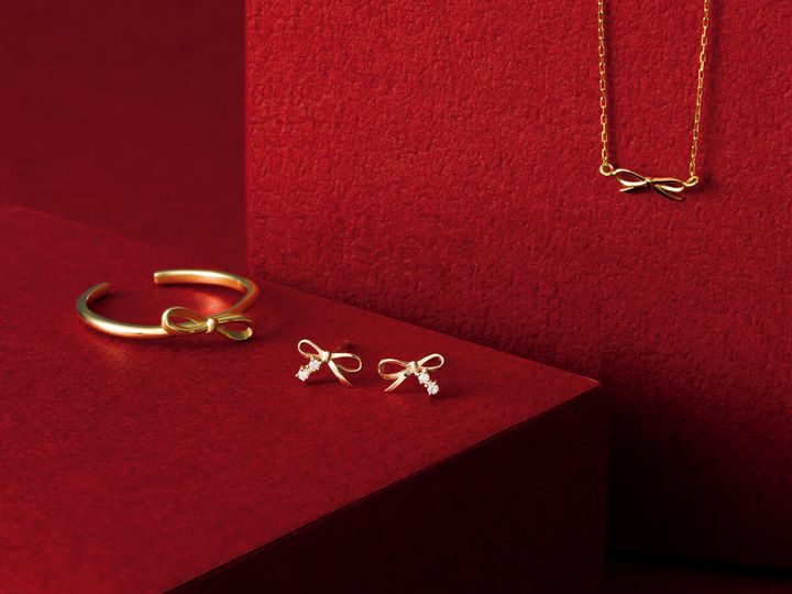 大切な人との絆や、忘れたくない想いを繊細なリボンで表現した冬限定のコレクション。肌になじむイエローゴールドのリボンがフェミニンで、どんなスタイリングにもマッチ。場面やファッションを問わず活躍してくれそう。