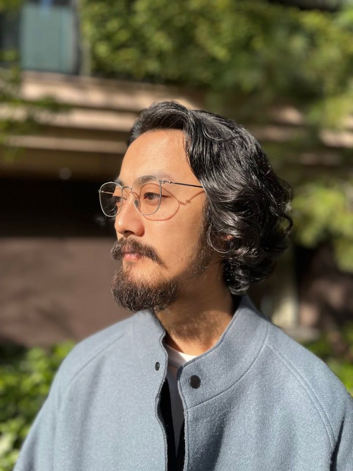 ドイツのメガネブランドが好きだという桂さん。信頼がおけるドイツならではの確かなつくりとモダンなデザインがお気に入り。レンズは薄っすらブラウンに