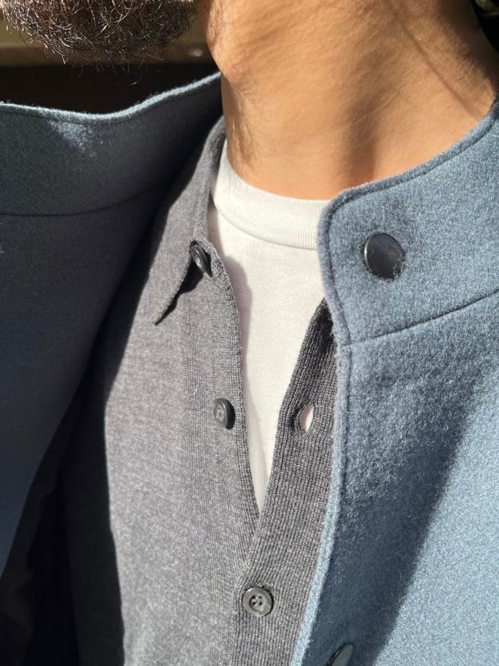 3. 【メンズ服に学ぶ】カーデのボタンは2つ開けで抜けを演出。エディフィス桂大地さんのコートコーデはインナーのレイヤードが決め手