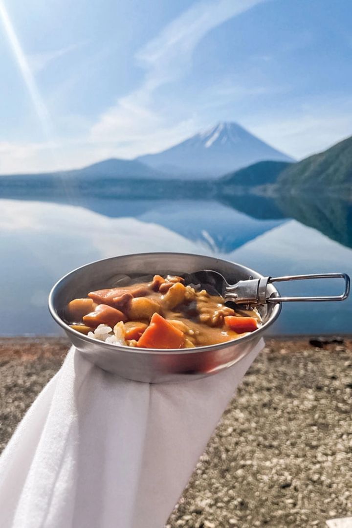 そして、ときめきといえば、キャンプ飯!私のお気に入りはかにの身とかに味噌の缶詰を飯ごうに入れて炊きこみごはんにするんですが、衝撃的なおいしさで♡