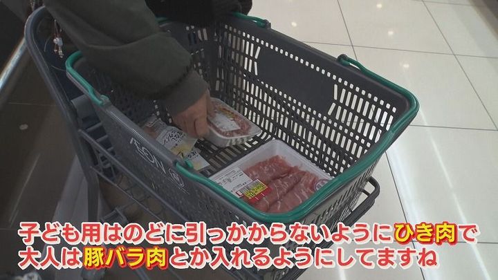 弘美さん:「子ども用はのどに引っかからないように『ひき肉』で、大人は『豚バラ肉』とか入れるようにしてますね」