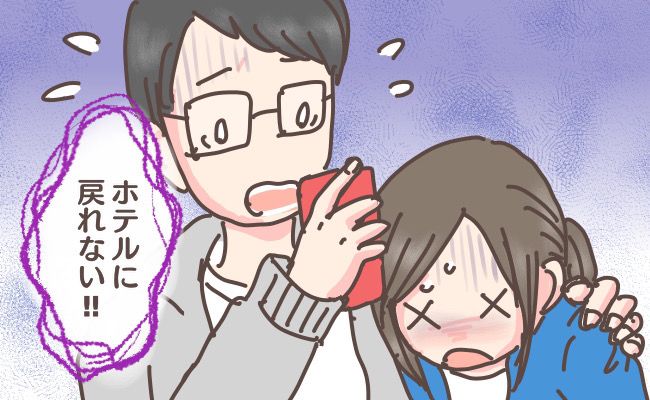 夫は「マジかよ!」と焦りながらも、お店の近くのホテルをスマホで検索し予約。夫の迅速な行動により、なんとかホテルのベッドで寝ることができました。ただ、もともと予定していたホテルの宿泊代は無駄になり、翌朝、私は夫に全力で謝罪したのでした。