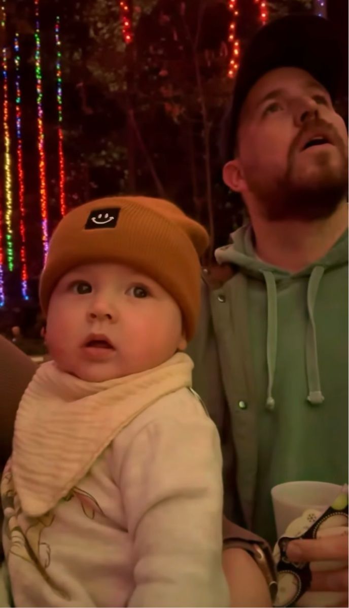 映し出されたのは、イルミネーションを見上げるパパと赤ちゃんのツーショット。