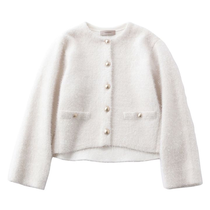 金ボタンが映えてジャケット見えするカーディガンは、着疲れ知らずなのにキチンと感をキープできるから年末年始の救世主アイテム。