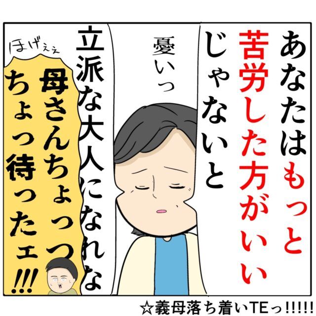 「あなたはもっと苦労した方がいい。じゃないと、立派な大人に・・・言いかけた義母を良し男さんが割り込んで止めました。
