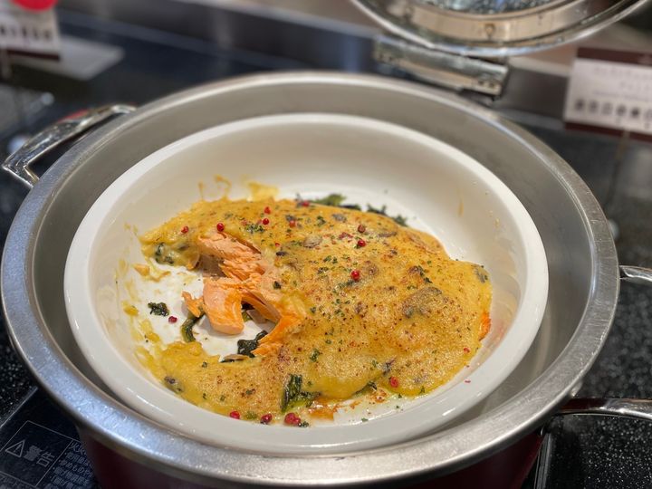 出典:MORE「アトランティックサーモンのテルミドール」 大きなサーモンの身にホワイトソースとチーズをかけてふっくらと焼き上げる、ホリデーシーズンにぴったりの華やかな料理。濃厚なホワイトソースとチーズがサーモンの旨味を引き立てます。
