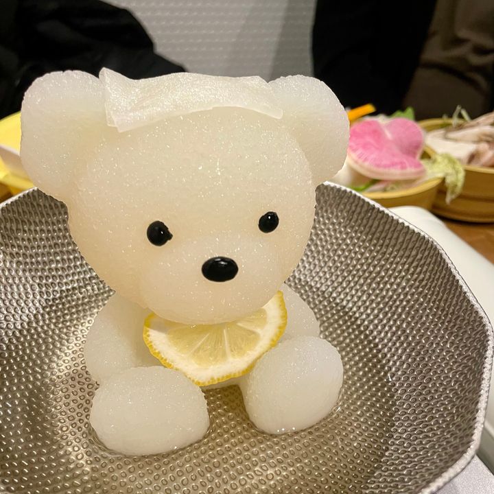このくまはスープを固めて作られていて、まるでくまが温泉にはいっているかのような可愛さ