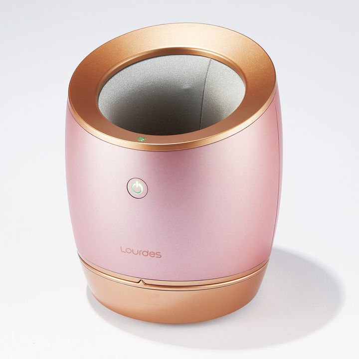 腕を入れるだけの立体構造のエアバッグでエステティシャンの手技を再現。心地いい揉みだしや押し流しの動きが味わえます。ねじるツイストコースと圧がかかる加圧コースが、腕の8つの筋肉を効果的にケア。置くだけで充電できるスタンド付き。AX-HXL215PK ¥11,000(アテックス)