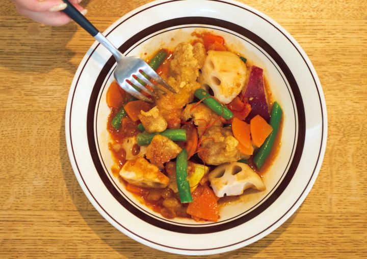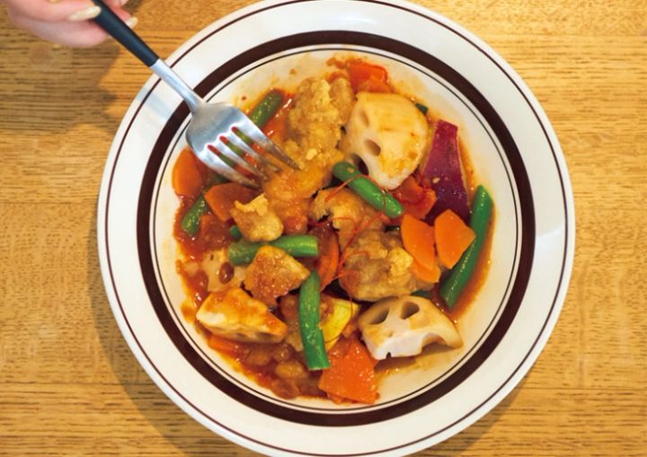 たっぷり野菜のヤンニョムチキン。電子レンジ5分でできる、できたてのおいしさが心も体も満たしてくれる。1食あたり¥842※定期購入12食の場合/GREENSPOON