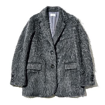 ジャケット/Ungrid 見た目の温度まで上げてくれる素材で、シーズンレスなジャケットを今に引き寄せ。ソフトな風合いにより、硬派な形もやさしく変化。毛足の長いふわふわとしたシャギー素材で身幅が広め+そで口にはファスナーつきで分厚いインナーとも好相性。