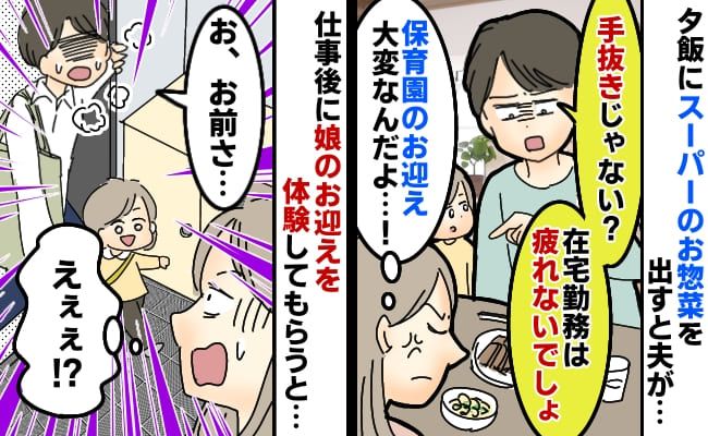 「手抜きすぎ」夕飯にスーパーのお惣菜を出すと夫から文句が!家事育児の苦労をわからせてみた結果