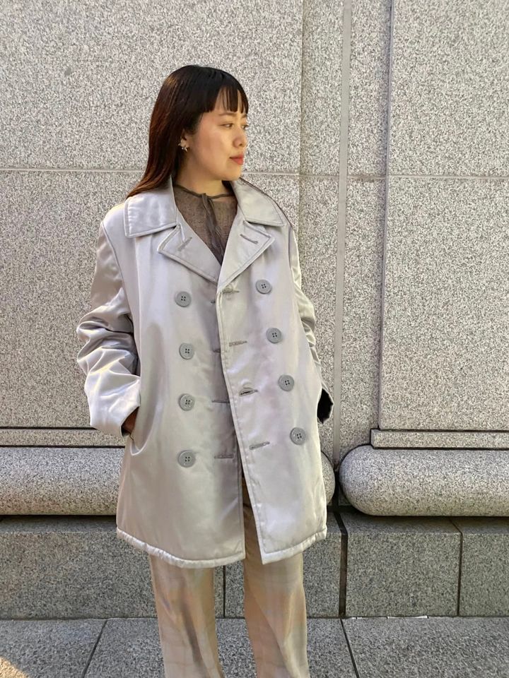 「アメリカ海軍も着ていたという歴史あるSchottのピーコート。これは、tahlia storeで見つけた70年代のデッドストックで、薄いブルーグレーの色と、シャイニーな素材が珍しく購入しました」ショットのアウターは本人私物
