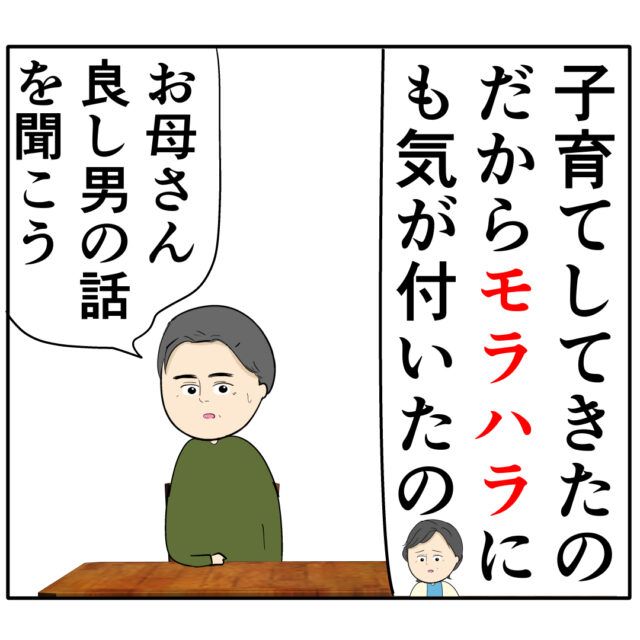 「子育てしてきたの。だからモラハラにも気づいたの。」自分の話が止まらない義母のとなりで静かにしていた義父はようやく「母さん、良し男の話を聞こう。」と助け船を出してくれました。