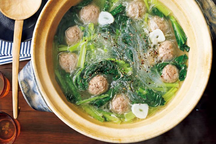 『豚だんごと小松菜のうま塩春雨鍋』のレシピ