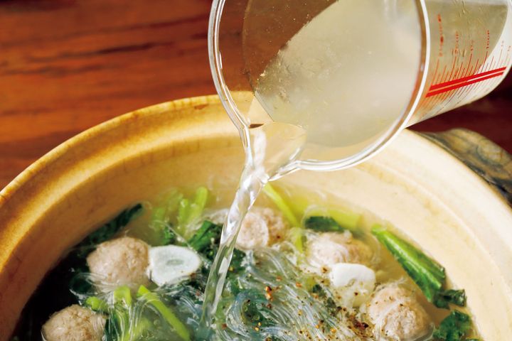 3. 家にある材料で作れる黄金比の〈鍋つゆ〉レシピ/野菜が無限にイケる鶏団子のうま塩春雨鍋