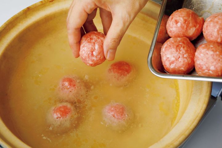 肉だんごを入れ、煮立ったらアクを取る。