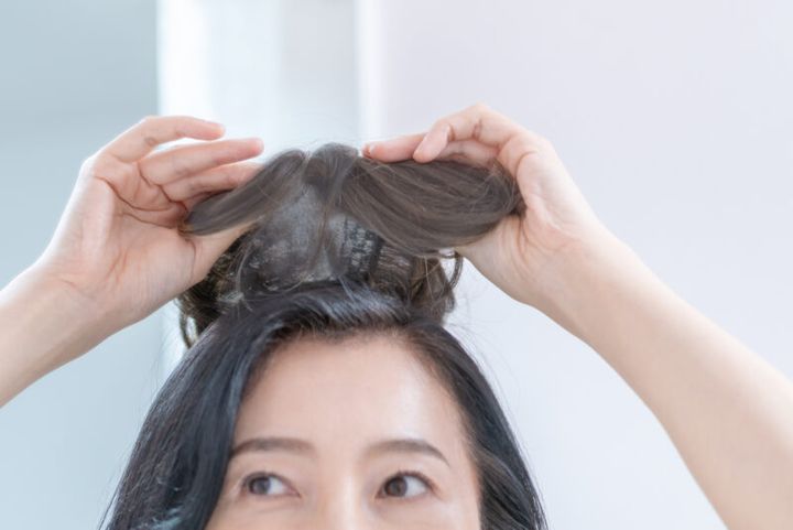 ウィッグはつむじの毛量が多過ぎず、根元にふわっとした立体感があると自然に見えます。頭頂部は目につきやすい場所なので、不自然に見えないか確認しましょう。