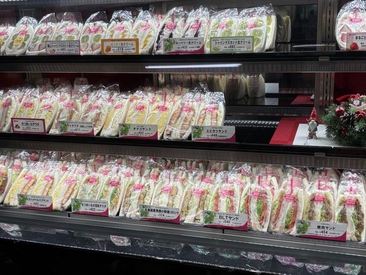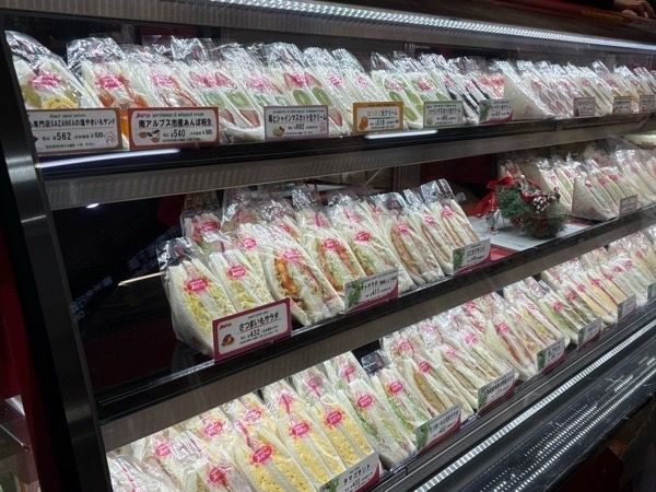 サンドイッチさんたちが、いっぱいならんでみんなを待ってる。店員さんからフルーツサンドはおススメだと伺いました。