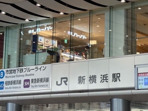新横浜駅。この表示を見つけたら、すぐ右に「サンドイッチハウス メルヘン」さんがある。