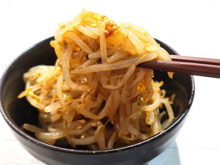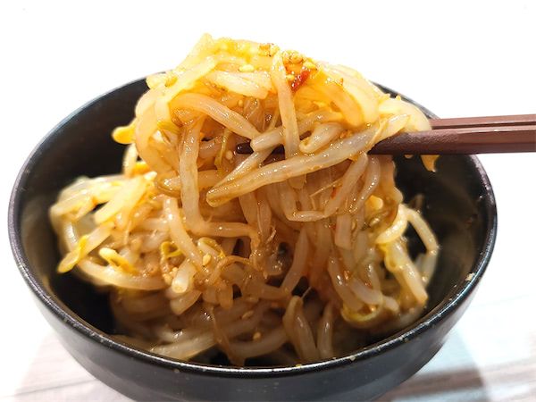 冷やした「漬け」の方は、味が染みていてさらにおいしさが増していましたよ!シャキシャキ感は作りたてよりは少し失われていましたが、しなっとしたもやしもまたいいですよね♪動画ではラーメンのトッピングとしてのせて楽しんでいましたっけ。「漬け」ではなくすぐに食べる場合は電子レンジ加熱でもいいそうですが、漬けにするならぜひ塩茹でしてほしいとのことでした。たしかに塩茹でした方が、しっかり漬かっているように感じます。