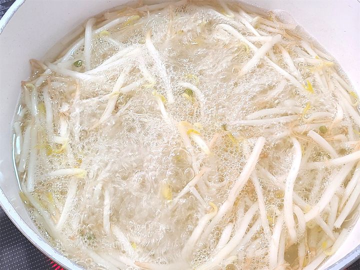 1.湯を沸かし、もやしを2分半ほど塩茹でします。