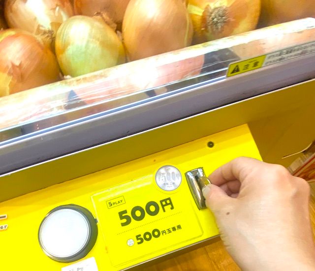 ちなみに、GETした玉ねぎはクレーンゲーム機に戻し、陳列されている玉ねぎから好きなものを選んでお持ち帰り用とします。クレーンゲーム機の玉ねぎはおそらく何度も落下しているので、新しいものから選べるのはうれしい気遣いですね。GETした2つと合わせて、合計6つの玉ねぎをお土産にできました。