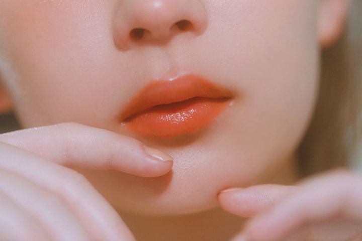 ウォームなオレンジやコーラルを下まぶたからチークゾーンにかけて重点的に効かせて、じゅわっと内側から湧き上がる血色感だけで魅せて。