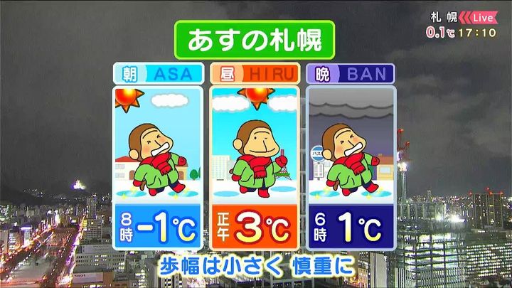 では、あすの札幌です!朝昼晩の天気をもんすけでお伝えします!