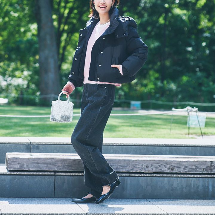 ダウンや中綿アウターに苦手意識がある人ほど、着るだけで今っぽさを醸し出せる短丈がおすすめ。特有のほっこり感を払拭して、誰でも旬バランスに!
