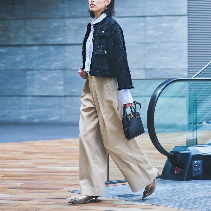 ジャケット¥41,800(カレンソロジー/カレンソロジー 二子玉川)シャツ¥35,200(オムガールズ/アダム エ ロぺ)パンツ¥47,300(キャバン/キャバン 丸の内店)ピアス¥24,200(Jouete)リング¥15,400(ete)バッグ¥104,500(ザンケッティ/八木通商)パンプス¥79,200(ペリーコ/アマン)