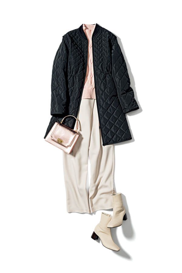 ダウンアウターをオンオフ問わず着るなら、美シルエットやレディなディティールのものを選ぶのがポイント。中綿入りやキルティングは防寒対策にも最適! 袖が取り外せるデザインなら、暖冬にも対応。