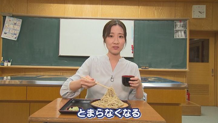 HBC世永アナ:「おいしい︕しっかりとしたコシがあってそばの⾹りが良い。⽌まらなくなる」