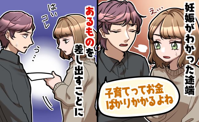 妊娠がわかり、私は妊娠・出産期について書かれた資料を読むようになりました。夫はその横でゲームやYouTube三昧。あまりに腹がたったので、あるものを突きつけました。すると少し変化がみられ……。