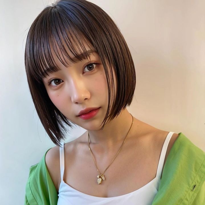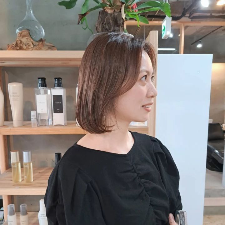 通常のボブよりも短くカットされた、ふんわり丸みのあるシルエットが特徴のミニボブ。長めの前髪をかきあげることで、さらにボリューム感を出すことができます。
