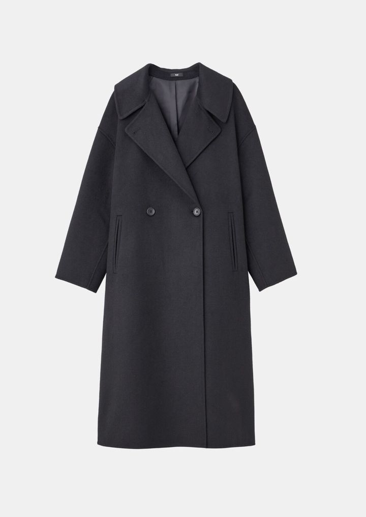 「裏地がないリバー仕立てなので、ロング丈でもとても軽い着心地です。またこのコートはベルトなしのスッキリとした仕様。あえてひとつ大きいサイズを選んでバサッと羽織っても、シンプルなデザインなのでキレイにまとまるところが◎」