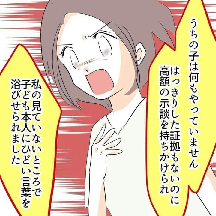 このお話は、ますまゆ・育児・エピソード漫画(@masumayu3)さんの友人の体験にもとづくものです。ある日、子どもが隣人の車を傷つけたと言われ、迷いながらも示談に応じた主人公。しかし、隣人は「他言しない」という約束を破り、あろうことか町内会でうその内容を触れ回っていました。すぐに電話で抗議するも、「示談をしたことは話していない」と驚きの持論を展開します。さすがに怒りが頂点に達した主人公は、町内会の場で反論をしますが…。