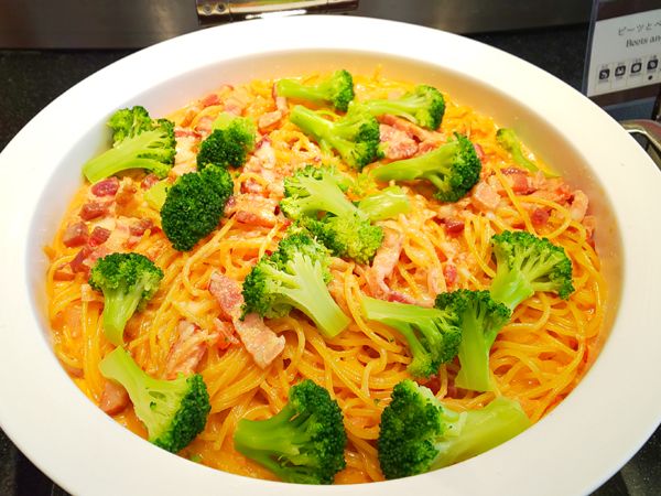 さっぱりと食べやすいパスタ「ビーツとベーコンのクリーム」。
