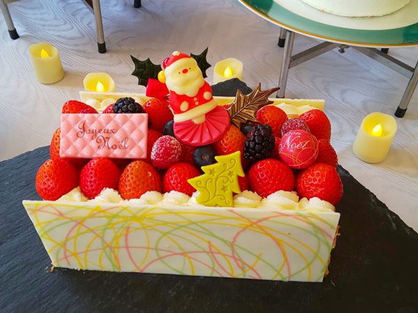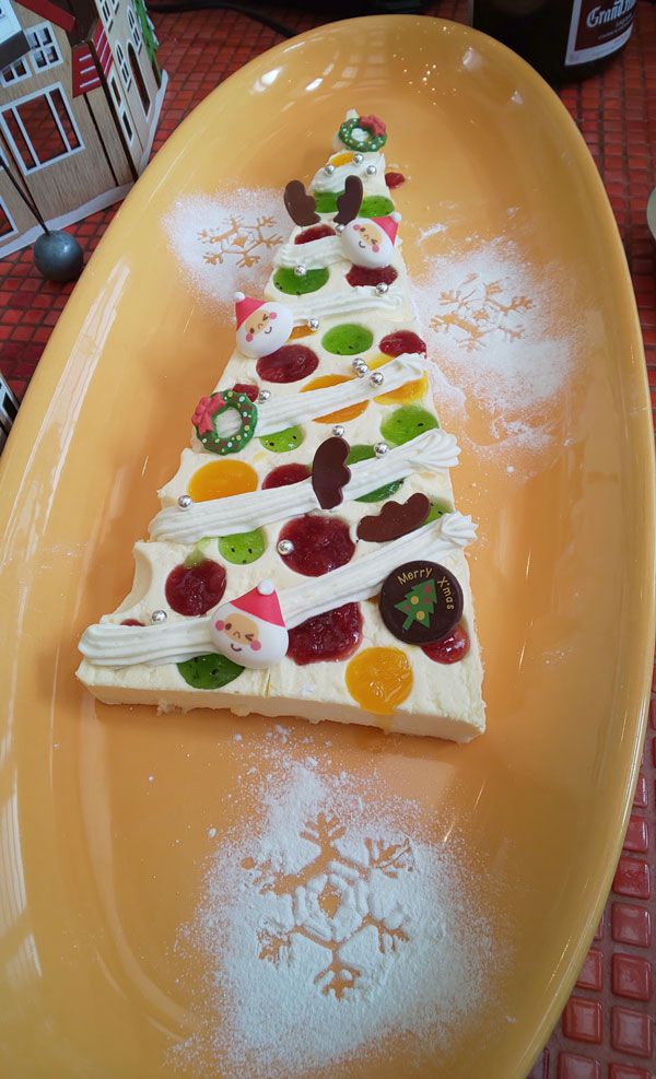 クリスマスケーキをモチーフにしたケーキは、お皿に取り分けるのがもったいないぐらいのかわいさ。