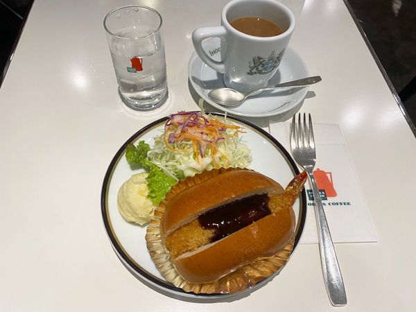 【イノダコーヒ】エビフライが入ったロールパンが秀逸!