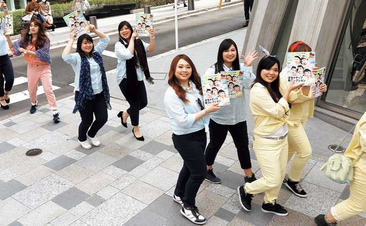 創刊記念イベントとして渡辺直美さんと表紙に登場したラファモ4名による二の腕握手会を開催。