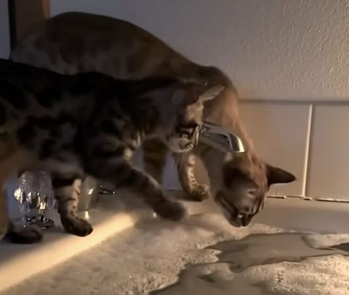怖いけど泡風呂が気になって集まる猫さんたち。 入浴時間が楽しくなりそう!