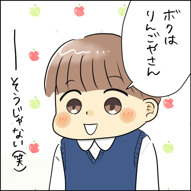 「ボクはりんごやさん」とまさかの返答。そうじゃない(笑)と思いながらも、可愛すぎる息子の答えにキュンとしました。